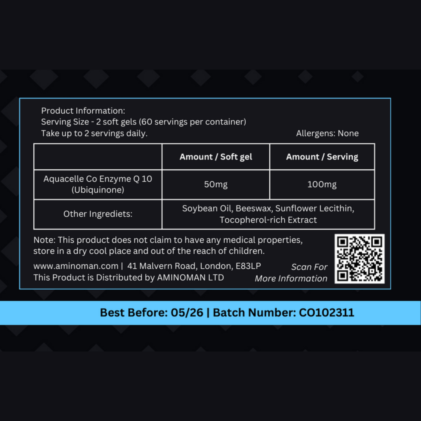 AquaCelle® CoQ10 by Amino Man is a next-generation coenzyme Q10 supplement designed for maximum absorption and stability.