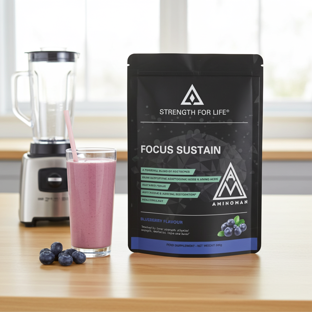 Added B vitamins, including B5, B6, B3, and B12, provide essential cofactors for energy metabolism and nervous system health, while Huperzine A supports memory and learning. With a refreshing natural blueberry flavour, Focus Sustain is a versatile daily nootropic for sustained focus, reduced fatigue, and improved resilience.