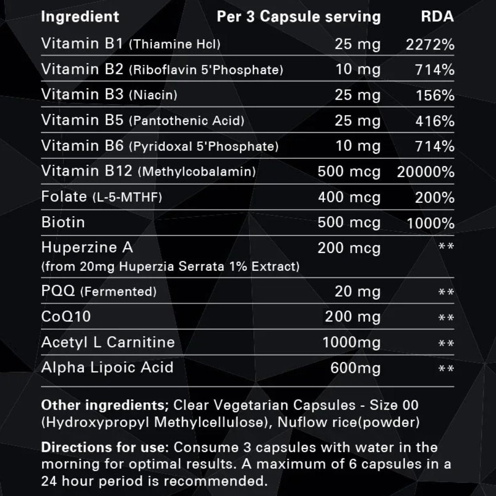 - Contributes to normal psychological function through carefully selected B vitamins that help maintain everyday mental clarity.