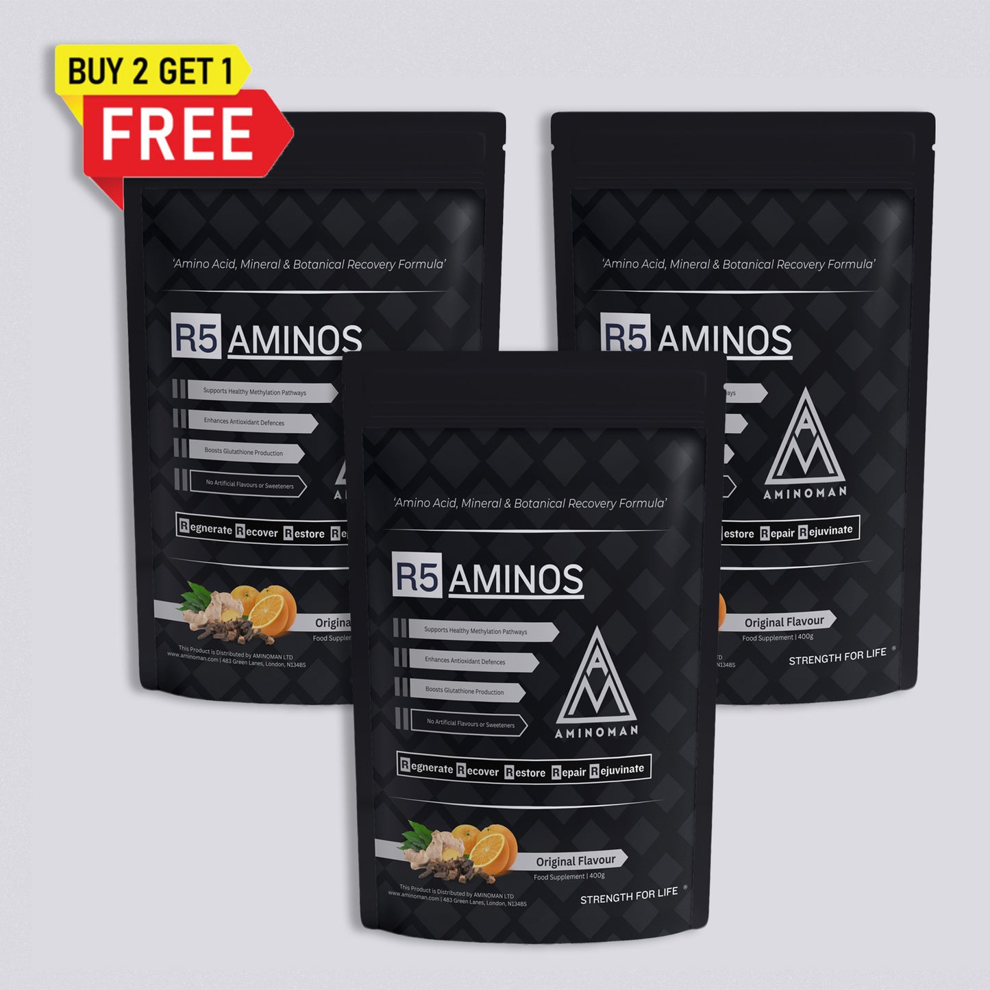 R5 AMINOS is Amino Man’s flagship recovery and sleep support supplement, trusted for years by elite athletes from The FA, Team GB, Premier League clubs, and international sports teams.