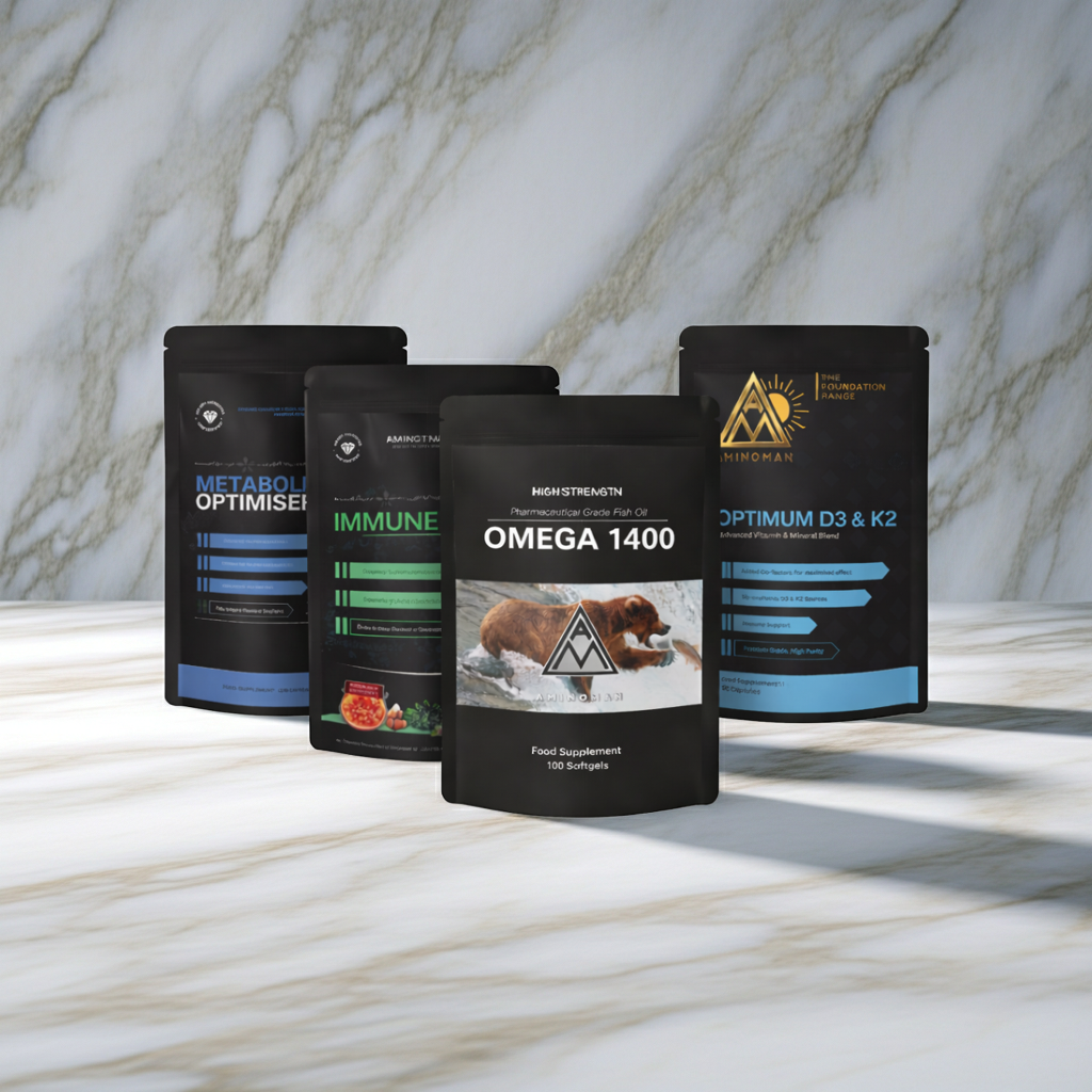 Bringing together Immune Power Formula, High-Strength Vitamin D3 & K2 Blend, Metabolic Optimiser, and Omega 1400 Fish Oils, this stack provides layered nutritional support to help the body stay strong, balanced, and supported through everyday demands and seasonal challenges.