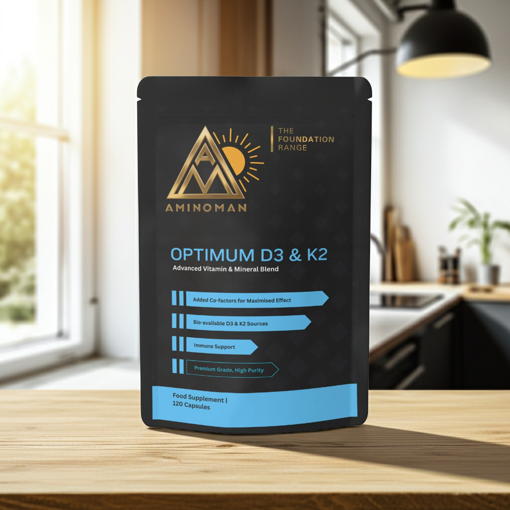 Amino Man places strong emphasis on precision, sourcing and consistency. Optimum D3 & K2 is produced with careful attention to ingredient quality and balanced formulation. The combination of high-strength vitamin D3, well-studied K2 MK-7 and essential minerals offers comprehensive support for individuals seeking to maintain normal immune function, bone strength and overall wellbeing throughout the year.