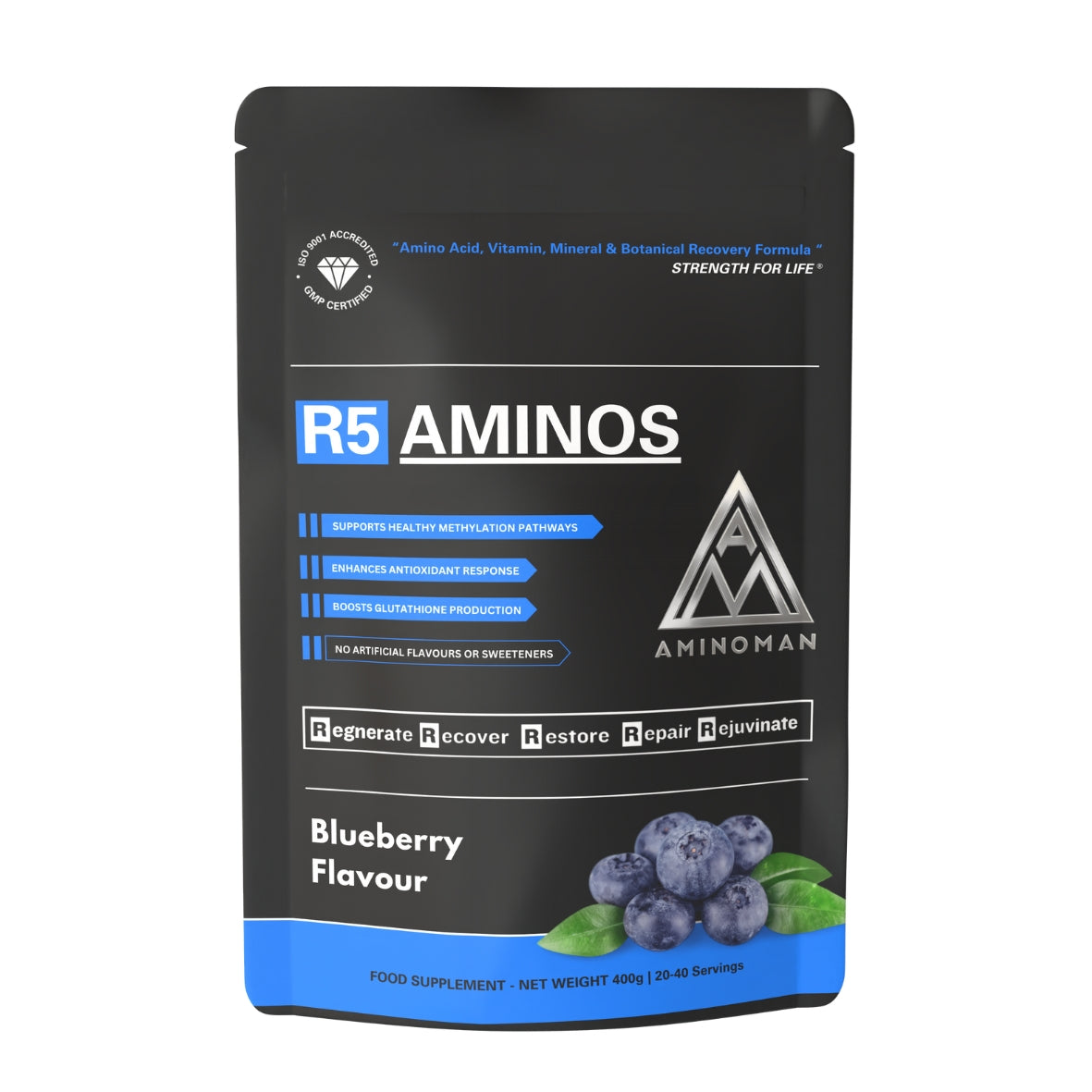 Flavour notice: As part of the Football Players Supplement Stack, R5 Aminos is supplied in Blueberry flavour by default. Alternative flavours (Original or Orange & Mango) may be shipped if availability is limited. Customers wishing to select or change flavour should leave a message by adding an order note in the cart.